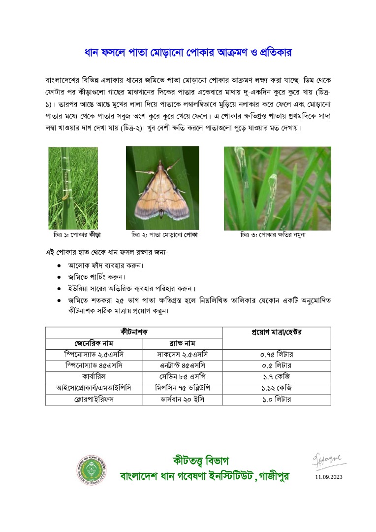 ধানের পাতা মোড়ানো পোকা দমনে করণীয়